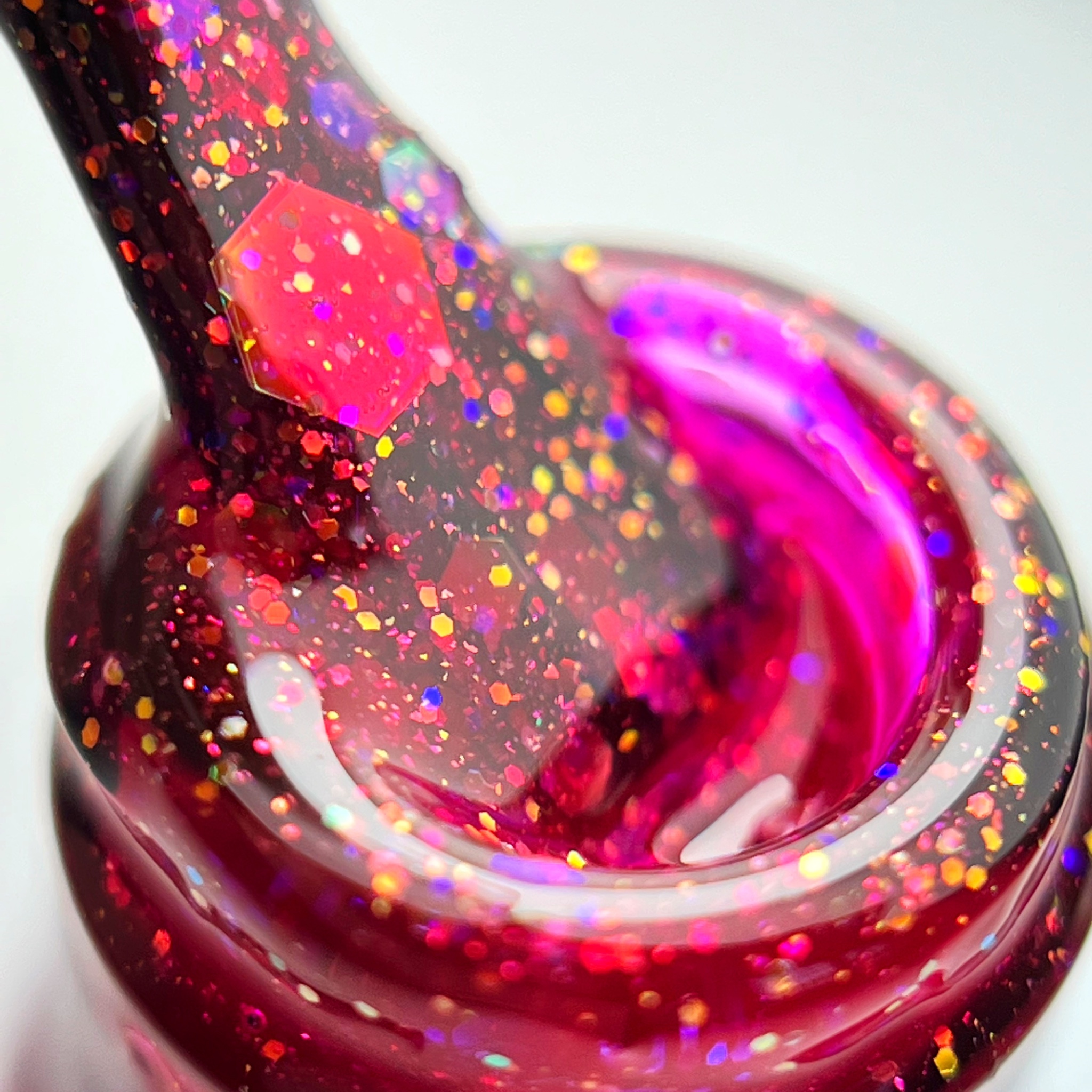 Red Glow – połączenie drobnych i grubych drobin zanurzone w transparentnej czerwono wiśniowej mgiełce.
