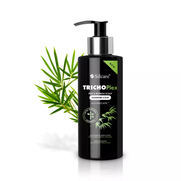 SILCARE PEEL&REFRESH SCALP BAMBOO SCRUB – głęboko oczyszczający peeling do skóry głowy. Pobudza cebulki włosów, reguluje pracę gruczołów łojowych, działa przeciwłupieżowo. Dzięki zastosowaniu ścierniwa naturalnego pochodzenia pozyskiwanego z bambusa doskonale usuwa pozostałości po kosmetykach oraz martwy, zrogowaciały naskórek. KOMPLEKS BAICAPILTM (ekstrakt z tarczycy bajkalskiej, kiełki sojowe i pszeniczne) przeciwdziała nadmiernemu osłabieniu i wypadaniu włosów oraz ma udowodnione działanie polegające na silnej stymulacji wzrostu nowych, zdrowszych włosów.